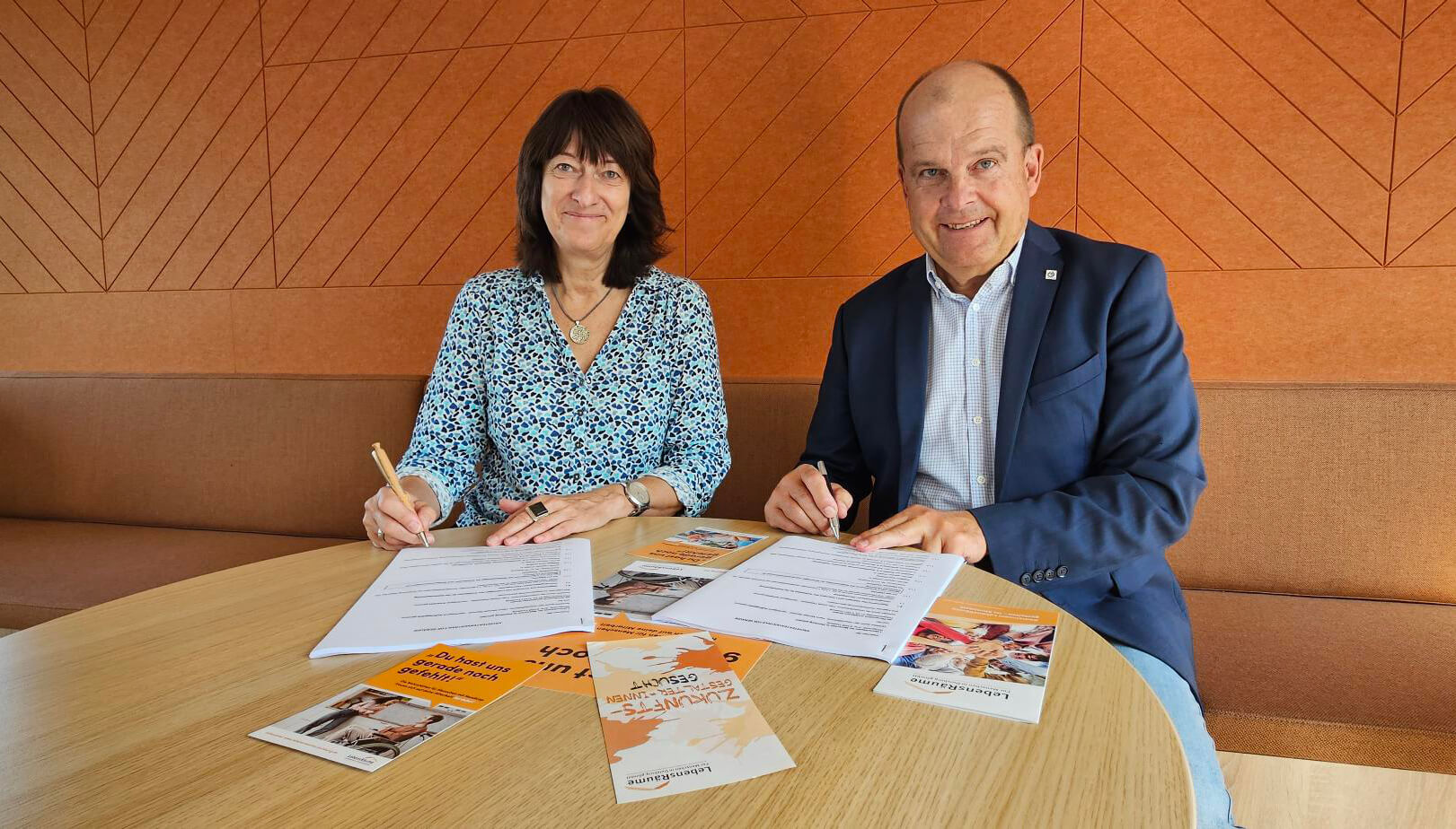 (Bild-Info: Dipl-Architektin Ulla Platzköster, die als federführende Architektin für die Planung und den späteren Bau verantwortlich ist, und Michael Reichelt, der Geschäftsführer der LebensRäume Für Menschen in Duisburg)