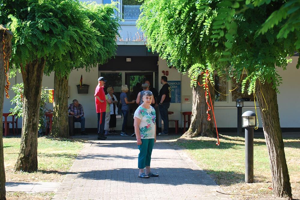 Die Wohnstätte liegt etwa einen Kilometer vom Ortskern Duisburg-Walsum entfernt. Dort befinden sich eine Vielzahl von Einzelhandelsgeschäften, Kaufhäusern und auch Wochenmärkte, die gerne für Einkäufe genutzt werden. In der Nähe sind Ärzte, Apotheken, Therapeuten und Krankenhäuser, zu denen wir gute Verbindungen pflegen. Auch religiöse Gemeindezentren, Kirchen, Sportstätten und Vereine sind in der Nähe.