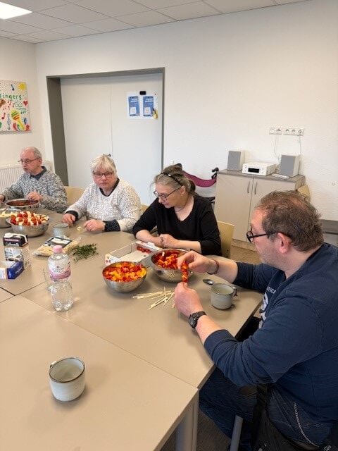 Unter dem Motto "Ran an die Töpfe" wurde in der Wohnstätte 2 ein gelungenes Koch-Event veranstaltet. Mit großer Begeisterung, Kreativität und Teamgeist wurden die Kochlöffel geschwungen und gemeinsam ein äußerst schmackhaftes Menü zubereitet: